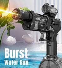 Featuring high-pressure automatic bursts, this watergun provides a powerful and continuous stream of water, eliminating the need for manual pumping. It's the ultimate toy for thrilling outdoor beach, pool, and garden fight games for kids.