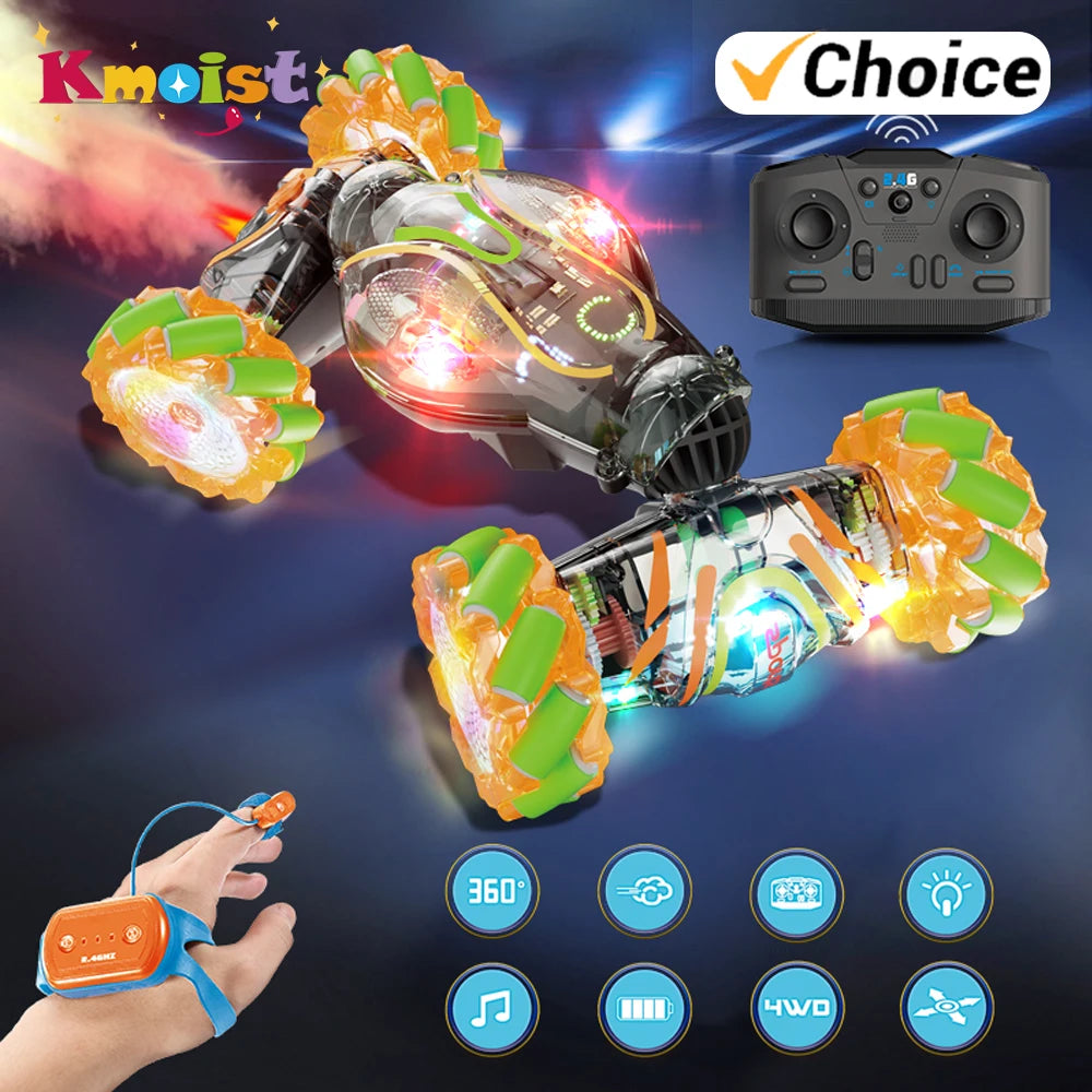 Remote Control Car with Spray Lights Music Stunt Car 2.4G Rc Dual Control Gesture Sensor Stunt Children's Toys Boys Kids Gifts