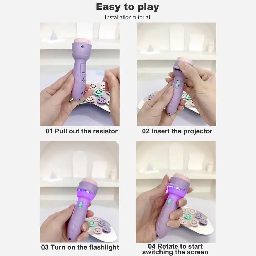 Introducing the Flashlight Projector for Kids, a fun way to stimulate children's imagination and creativity. Gently rotate the head of the torch and start projecting soft light images that help kids cognize and learn. Let your child explore and learn with this innovative toy.